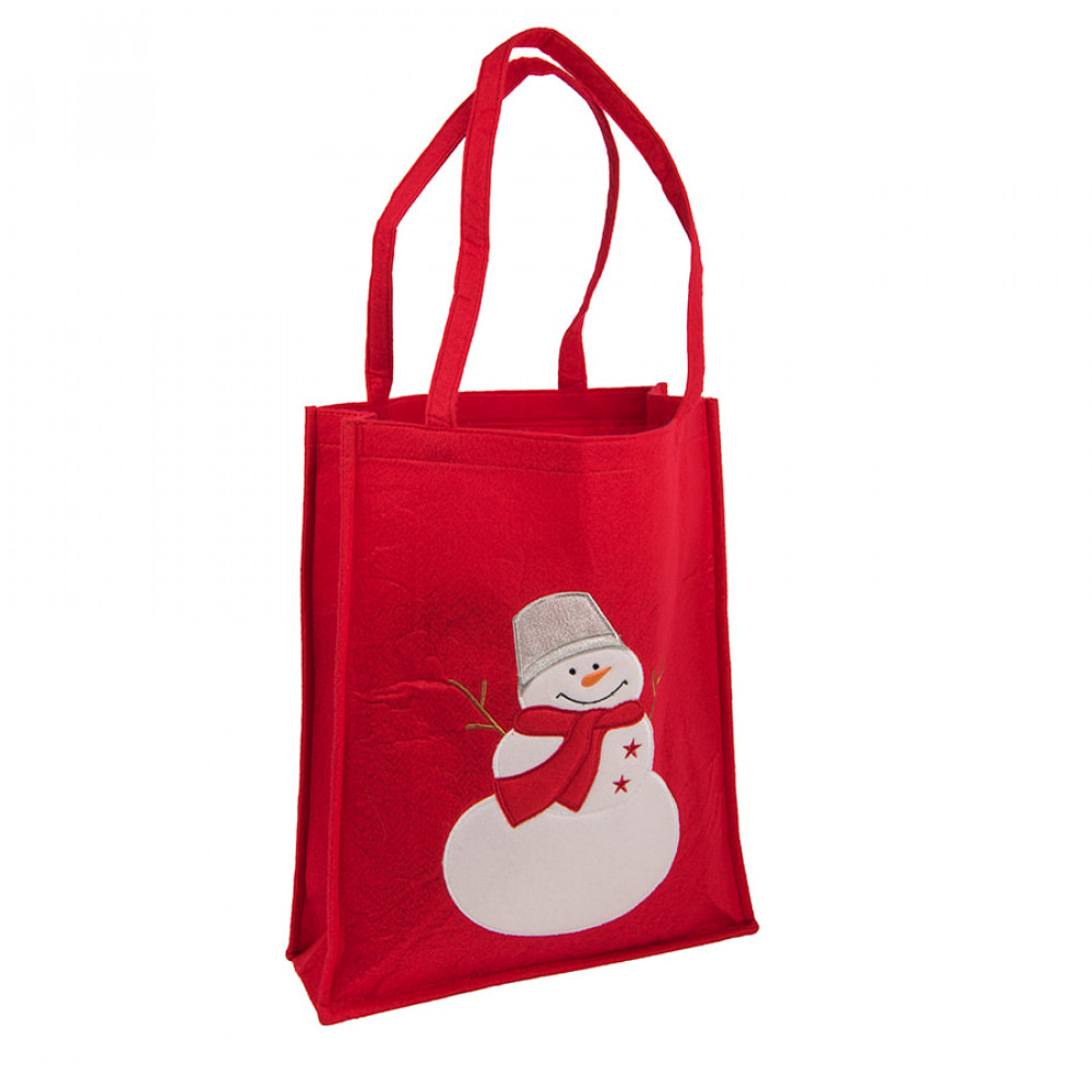 Параметры: Сумка "СНЕГОВИК" с аппликацией, красный, 40*33*9 см, войлок, шелкография