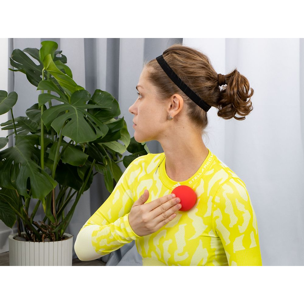 Разместите мяч на точке, в которой чувствуется дискомфорт, надавите и прокатывайте его из стороны в сторону в течение нескольких минут до ощущения расслабления. Рекомендуется применять при умеренных болевых ощущениях.