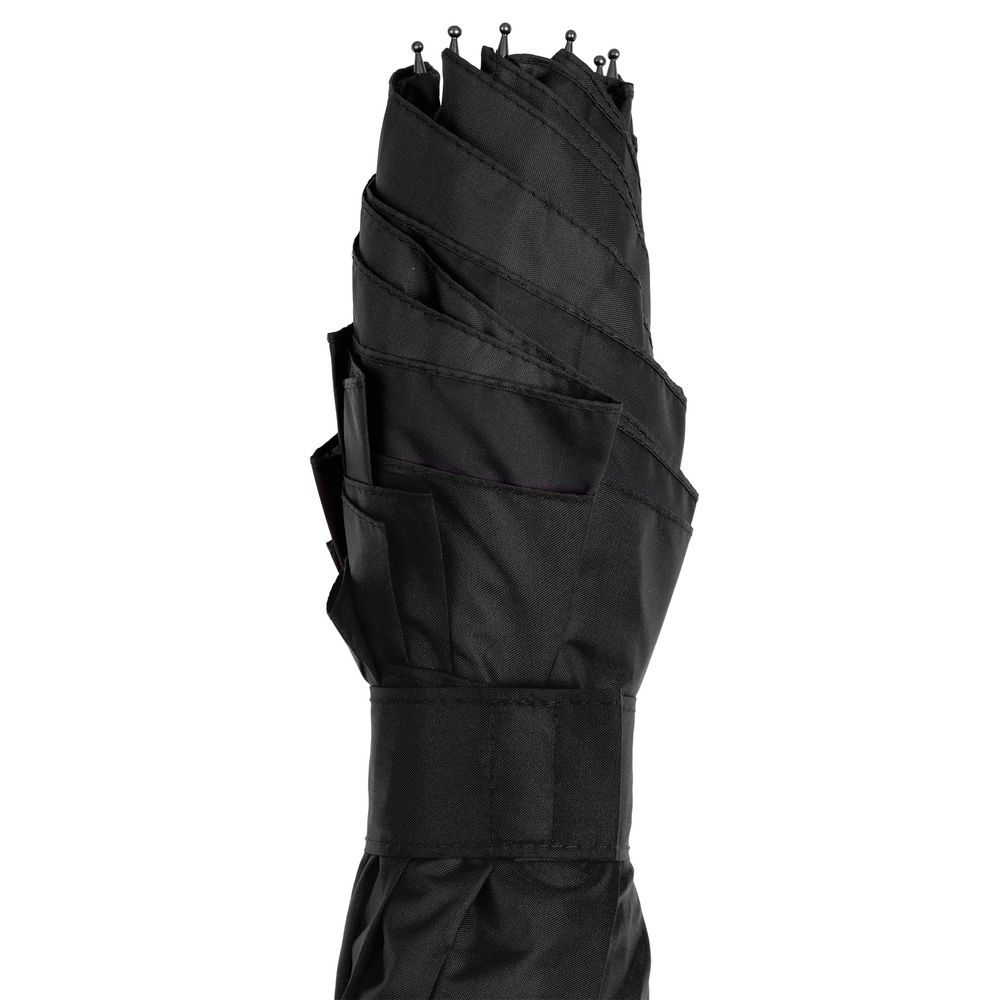 Это зонт-наоборот, зонт-наизнанку. Складываясь после дождя, он прячет мокрую поверхность в себя, а сухая остается снаружи. Для просушки его можно не только подвесить за ручку, как обычные зонты, но и поставить прямо на пол в полусложенном состоянии. Итог — мягкая щадящая просушка и минимум занятого мокрым зонтиком места.
